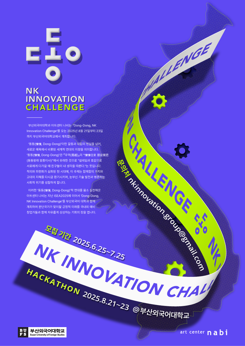 부산외국어대학교와 나비미래연구소가 주관·주최하는 'NK 이노베이션 챌린지'의 모집 공고가 시작되었습니다.