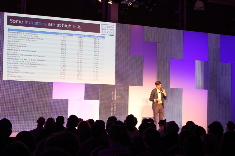 런던에서 열린 퓨처페스트2015에서 자동화에 대체되는 일자리에 현황과 전망에 대해 설명하고 있는 마이클 오스본 교수(옥스포드 마틴 스쿨)